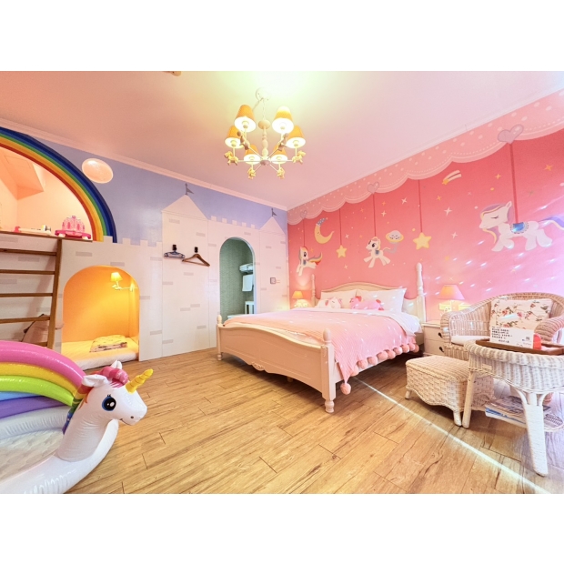 彩虹小馬三人房為獨立進出,有陽台面景觀湖房型。 ♦礦泉水 ♦咖啡包 ♦茶包 ♦熱水壺 ♦加大雙人床及150公分*150公分床墊 ♦電視 ♦浴缸 ♦免費停車場 房價 定價 : NT$5,800 假日 : NT$4,500 平日 : NT$3,800 定價 : 農曆春節過年期間 假日 : 週六 平日 : 週日~週五 來電享訂房優惠